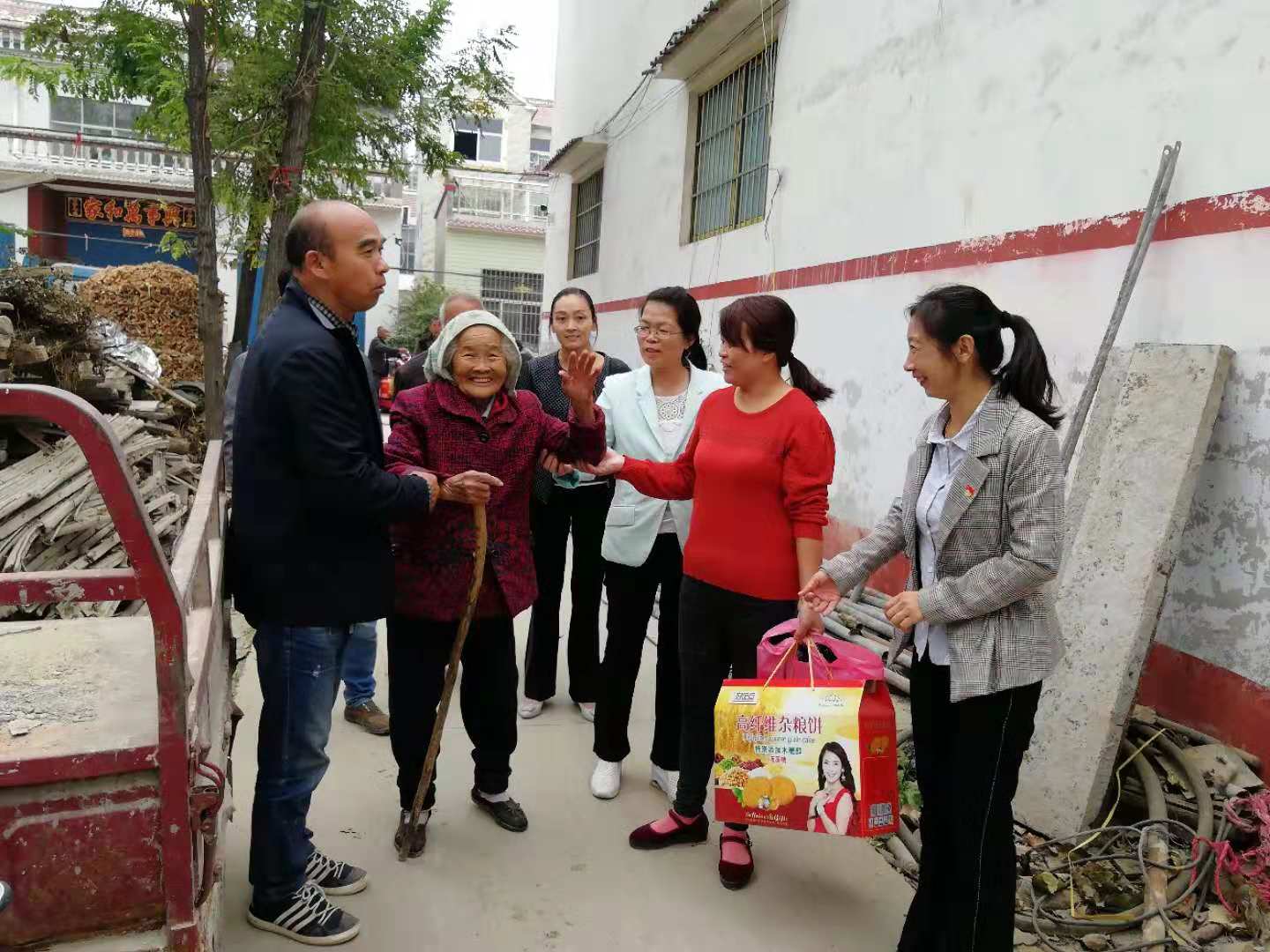 縣婦聯(lián)駐村工作隊(duì)首先召開黨員代表會(huì),要求黨員在扶貧網(wǎng)格化管理、秸稈禁燒、抗旱種麥、路肩培護(hù)、基礎(chǔ)設(shè)施建設(shè)、老人合吃合戶、五保老人集中供養(yǎng)、兩篩等各項(xiàng)工作中起到示范帶頭作用,要求大家以身作則,積極向群眾宣傳黨的扶貧政策;其次,在組織該村黨員完成上微黨課、升國(guó)旗、唱國(guó)歌、重溫入黨誓詞,交納10月份黨費(fèi)等主題黨日活動(dòng)規(guī)定動(dòng)作后,與部分黨員、全體村干部一起分別對(duì)代廟、查樓、張石橋、丁樓四個(gè)自然村的43戶85歲以上高齡老人進(jìn)行了看望慰問(wèn),每到一戶,工作隊(duì)都親切詢問(wèn)老人的生活情況、身體狀況,是否存在困難,有什么需要幫助的沒有。