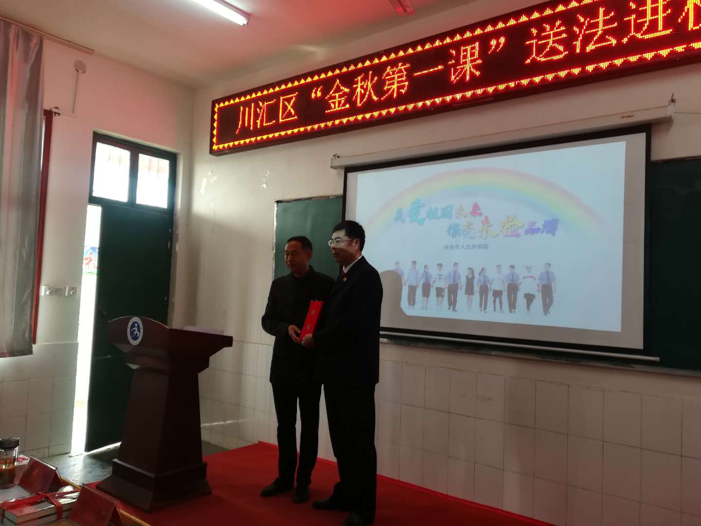 10月16日上午,由川匯區(qū)人民檢察院、川匯區(qū)教體局、共青團(tuán)川匯區(qū)委、川匯區(qū)婦聯(lián)共同舉辦的“金秋第一課”送法進(jìn)校園活動在周口市第23中舉行。