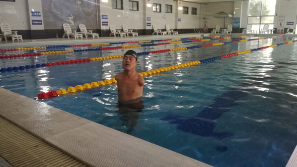 島建書進(jìn)行游泳訓(xùn)練
