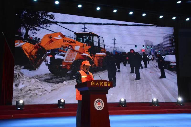 這一細節(jié),令臺下的環(huán)衛(wèi)工和家屬感到心里很暖?!邦I導記著我們呢,政府知道我們干活累,今天我為自己的身份感到自豪!”環(huán)衛(wèi)工劉大媽激動地說。