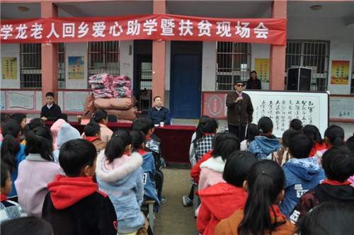 看到這一幕,黃寨鎮(zhèn)黨委書記朱宏偉動(dòng)情地說:“讓我們?nèi)珗?chǎng)起立,用熱烈的掌聲向于學(xué)龍老人表示崇高的敬意!于老千里迢迢回到故鄉(xiāng),用一份飽含愛心的余熱,給我們帶來了溫暖,他是最可敬的人,也是最可愛的人。希望埠口小學(xué)全體師生學(xué)習(xí)于老的這種高尚情懷,辦好學(xué)校、育好人才,培養(yǎng)好一個(gè)個(gè)家庭的希望,助力脫貧攻堅(jiān)!”