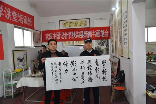 筆墨寫春秋,重彩頌佳節(jié)。為慶祝第19個(gè)中國(guó)記者節(jié),在扶溝縣的張坡詩(shī)詞名人書畫館,來自省書法家協(xié)會(huì)的書法家與當(dāng)?shù)匦侣勑麄鞑块T的書畫愛好者們齊聚一堂,以舉行書畫筆會(huì)的形式向新聞媒體人慶賀節(jié)日。
