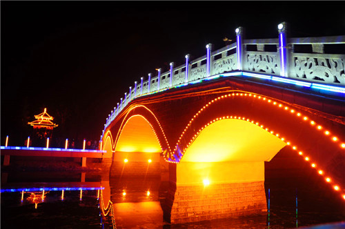 統(tǒng)計數(shù)據(jù)顯示,貫穿城區(qū)“五河”的濱水景觀廊道目前已達45公里,環(huán)繞互通的水系雨污分流,清波蕩漾,千年古城活力再現(xiàn);沿岸廣場、游園、玉欄、花木、亭、廊、親水平臺,玲瓏別致,相映成趣,形成了無數(shù)個多元空間,為市民提供了休閑健身空間和漫步快跑的理想場所;城區(qū)的50多座街心主題文化園,依勢而修,與沿河的美化、綠化、亮化融為一體,每天傍晚,清波蕩漾,虹橋飛架,臥波噴泉伴隨著悠揚的音樂翩翩歡舞,“五河”上下,燈火璀璨,絢麗多彩,如夢如幻。“九河繞真源,五湖潤鹿邑”的生態(tài)水系景觀讓行走其間的人恍若走進江南水鄉(xiāng),人在水上,水在畫中的美妙意境讓行走其間的人身心放松、回歸自然。
