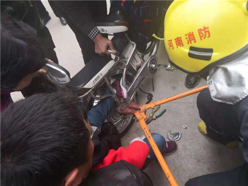 鄲城:女童腳卡電動(dòng)車 消防成功施救
