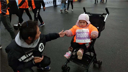 “重在參與,讓寶寶也感受一下馬拉松的比賽的氣氛,目的還是帶孩子活動活動,從小養(yǎng)成一個運動的好習慣?!币σ壮康膵寢屵@樣介紹。