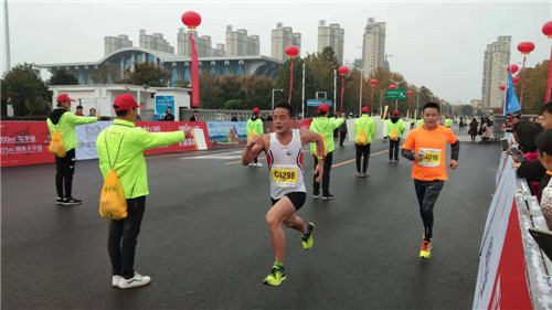 11月18日,在2018周口馬拉松暨善跑中國周口站現(xiàn)場,一個個身穿統(tǒng)一服裝的志愿者活躍在賽道之上,他們或給選手舉路線指示牌,或伸出大拇指給路過選手一個大大的“贊”,成為賽場內(nèi)外一道靚麗的風景。