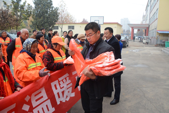 近日寒流來(lái)襲,氣溫驟降,連續(xù)的低溫降雨天氣讓人感受到了冬天的寒冷,為了確保縣城區(qū)環(huán)境衛(wèi)生干凈整潔,廣大環(huán)衛(wèi)工人們始終堅(jiān)持冒嚴(yán)寒每天起早貪黑打掃城區(qū)衛(wèi)生,默默無(wú)聞堅(jiān)守在工作一線。12月3日,西華縣媧城商會(huì)會(huì)長(zhǎng)黃鳳芝攜手愛(ài)心企業(yè)山西汾酒集團(tuán)代理商宋二領(lǐng)來(lái)到城管局向環(huán)衛(wèi)工人捐贈(zèng)一批環(huán)衛(wèi)保潔防寒服,在寒冷冬天為堅(jiān)守縣城區(qū)保潔一線的每位環(huán)衛(wèi)工人送去溫暖。