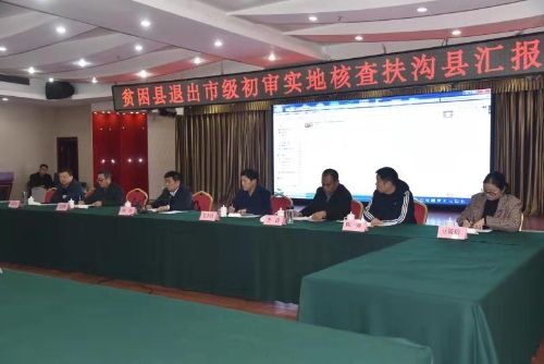 12月3日,貧困縣退出市級初審實地核查扶溝縣匯報會召開。市級初審第一實地核查組組長劉哲,副組長毛立營、王啟輝、李濤、齊長軍、陳強,監(jiān)督員周萌,聯絡員豆筱倩,扶溝縣領導盧偉、張峰、段然、趙紅亮等出席會議。縣委副書記、政法委書記張峰主持會議。