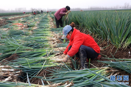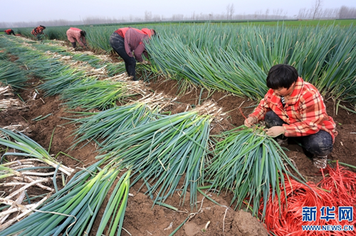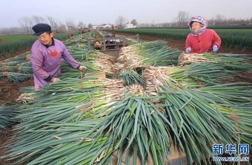 近年來,淮陽縣齊老鄉(xiāng)袁樓行政村大力發(fā)展特色種植,以“合作社+農(nóng)戶”的形式種植大蔥4000余畝,每畝增收14000余元,帶動村里貧困人口35戶124人土地入股和就業(yè),其中已有25戶脫貧。通過發(fā)展種植大蔥,該村從以前人均不足2000元的貧困村變成如今人均達到1萬多元的小康村。新華網(wǎng)發(fā)(楊正華 攝)