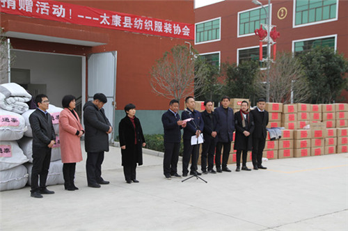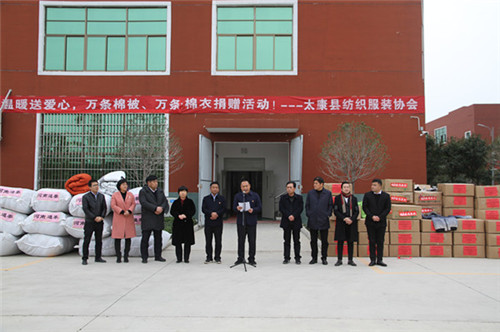 太康縣委副書記、政法委書記王程清在致辭中指出,扶貧濟(jì)困、樂善好施是中華民族的傳統(tǒng)美德,通泰紡織、銀鑫棉業(yè)、萬利源棉業(yè)等縣紡織協(xié)會(huì)成員單位通過捐款捐物、產(chǎn)業(yè)幫扶、就業(yè)幫扶、基礎(chǔ)設(shè)施幫扶等多種形式投入到脫貧攻堅(jiān)行動(dòng)中,幫助貧困群眾發(fā)展生產(chǎn)、改善生活條件、擺脫疾病困擾、完成學(xué)業(yè)夢(mèng)想、為貧困群眾早日脫貧貢獻(xiàn)出自己的一份力量,并為他們捐贈(zèng)棉衣棉被的善舉表示感謝。
