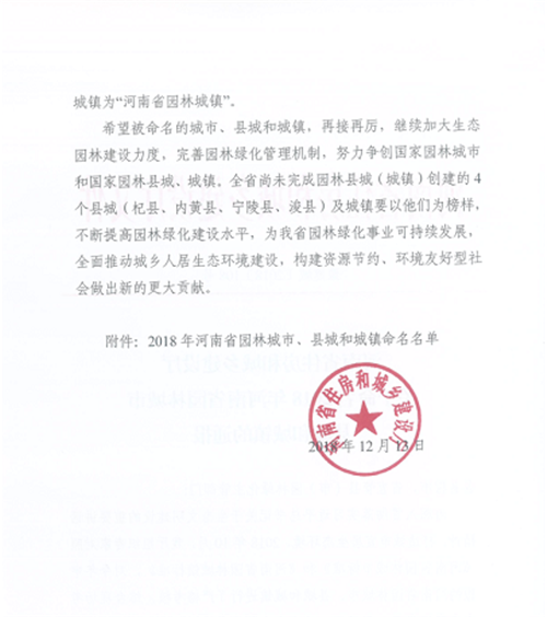 12月17日,記者從太康縣住房和城鄉(xiāng)建設(shè)局獲悉:河南省住房和城鄉(xiāng)建設(shè)廳辦公室日前專門下發(fā)文件,公布了河南省園林城市、縣城和城鎮(zhèn)擬命名名單。太康縣和西華縣成功入選2018年河南省園林縣城。