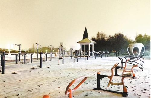 2018年冬天的第一場大雪,把周口市中心城區(qū)沙潁河風景區(qū)裝扮得清新雅致,別有一番風味。花草、綠植、雕塑、亭臺、環(huán)廊、步道乃至健身器材,在雪的映襯下,都顯得通透而有靈性,讓人欣喜非常。