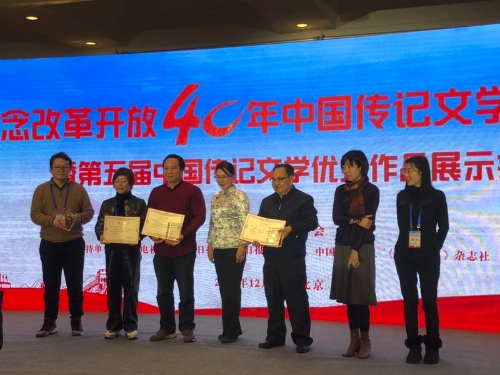 據(jù)悉,中國傳記文學(xué)學(xué)會(huì)于1995年、2001年、2007年、2012年先后四次舉辦中國優(yōu)秀傳記文學(xué)作品獎(jiǎng)推薦活動(dòng),《開國領(lǐng)袖毛澤東》(王朝柱)、《我的父親鄧小平》(毛毛)、《心靈的歷程》(劉白羽)、《山高水長(zhǎng)》(聶力)、《梅蘭芳全傳》(李伶伶)、《從戰(zhàn)爭(zhēng)中走來——兩代軍人的對(duì)話》(張勝)、《王蒙自傳》(王蒙)等多部長(zhǎng)篇和一些中短篇優(yōu)秀傳記文學(xué)作品獲獎(jiǎng)。該獎(jiǎng)由中國傳記文學(xué)學(xué)會(huì)主辦,是中國傳記文學(xué)學(xué)會(huì)的最高榮譽(yù)獎(jiǎng)項(xiàng)之一。