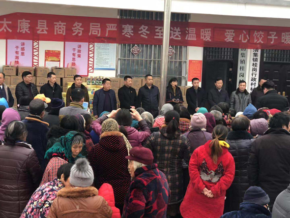 12月21日下午,冬至前夕,太康縣副縣長(zhǎng)喬偉、縣商務(wù)局局長(zhǎng)李曉紅,清集鎮(zhèn)黨委書記吳文靜,帶著對(duì)貧困群眾的關(guān)心、關(guān)愛(ài),到太康縣清集鎮(zhèn)張子影行政村、桂崗行政村開(kāi)展嚴(yán)寒冬至送溫暖,愛(ài)心餃子暖人心扶貧慰問(wèn)活動(dòng)。