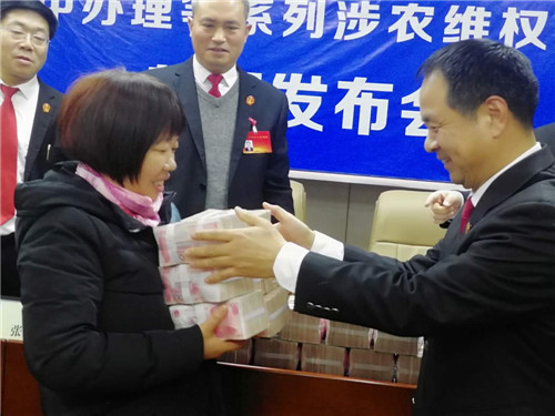 “感謝項(xiàng)城法院的領(lǐng)導(dǎo),他們一心為民,克服種種困難,幫助我們要回了血汗錢。”12月24日,項(xiàng)城法院拖欠農(nóng)民工工資案件集中辦理等系列涉農(nóng)維權(quán)活動(dòng)新聞發(fā)布會(huì)在該院召開,16名涉農(nóng)維權(quán)案件當(dāng)事人從項(xiàng)城法院黨組成員、院長張永波的手中接過索要許久的血汗錢,喜極而泣。