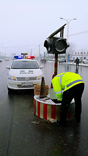 設(shè)施科民警雪天維修紅綠燈