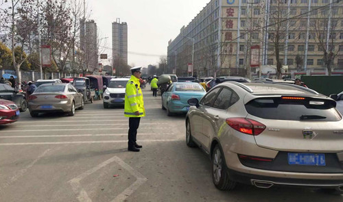 1月27日,正逢鄲城縣第一高級(jí)中學(xué)學(xué)生放假,接學(xué)生車輛大幅增加,交通壓力逐漸增大。鄲城縣公安局副政委朱衛(wèi)兵提早計(jì)劃,派出鄲城縣交警大隊(duì)治超中隊(duì)民警作為疏導(dǎo)交通小分隊(duì),分別在一高周圍的多個(gè)路口為鄲城縣一高交通安全保駕護(hù)航,確保師生“順暢”回家。