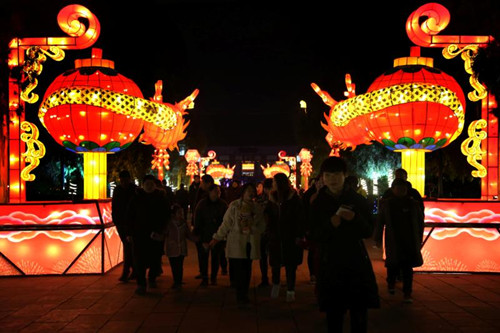 本次燈會(huì)以老子為主題火力全開的激光鐳射創(chuàng)意,真的讓不少游客點(diǎn)贊。新年紅紅火火肥豬迎新年、預(yù)示著來年走好運(yùn)的喜迎春聯(lián)、老子文化思想的八卦精髓展現(xiàn)、象征新年新福氣的大紅福等,都融入在這暖洋洋的新春大禮中,大家紛紛拿出手機(jī)、相機(jī),擺出各種POSE在主題燈會(huì)面前合影留念,這里儼然已經(jīng)成了自拍勝地人間盛景、好不熱鬧。