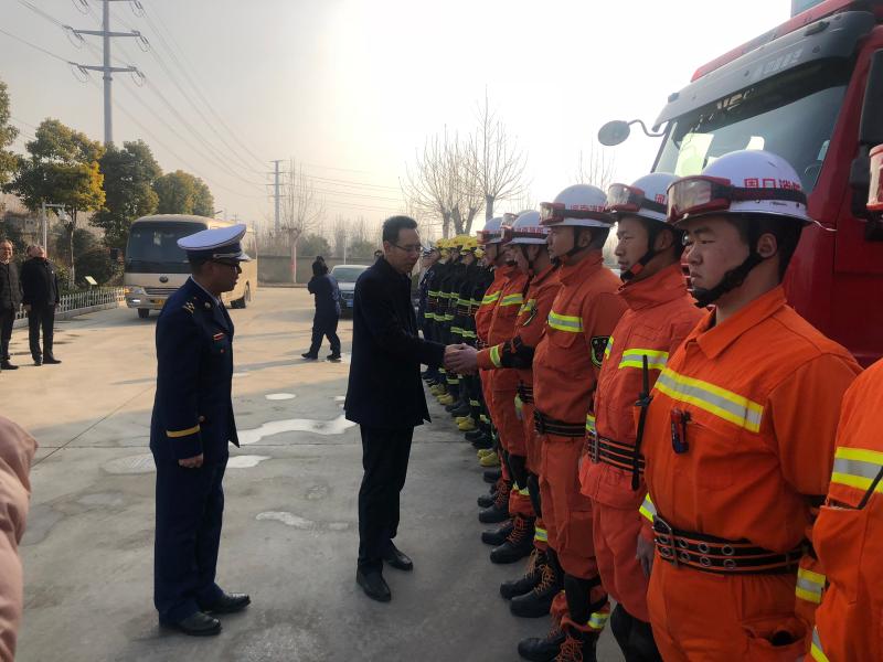在開發(fā)區(qū)消防大隊,王文峰與每一位消防隊員握手,詳細詢問他們的工作、生活、學習情況。王文峰指出,2018年,開發(fā)區(qū)消防大隊牢記“聽黨指揮,能打勝仗,作風優(yōu)良”,努力訓練,敢于戰(zhàn)斗,面對一系列急難險重任務(wù)能夠拉得出、打得贏,為保障人民群眾生命財產(chǎn)安全作出了重要貢獻。新的一年,全市消防救援隊伍要繼續(xù)發(fā)揚特別能吃苦、特別能戰(zhàn)斗的優(yōu)良傳統(tǒng),加強應(yīng)急救援綜合能力建設(shè),真正發(fā)揮好應(yīng)急救援主力軍和國家隊的職能作用。
