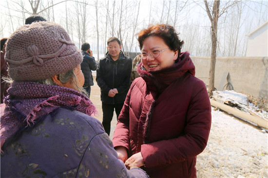 2018年5月11日,張穎波在看望大新鎮(zhèn)陳樓村的困難群眾吳鳳蓮時(shí),曾對(duì)她說(shuō)過(guò)一句話,“等你新房蓋好,我再來(lái)看你。”76歲的吳鳳蓮把這句話牢牢地記在了心里。一見(jiàn)張穎波的面,拉著手留著淚連聲說(shuō):“俺家房早就蓋好了,就一直盼著恁來(lái)。我知道恁忙,可就想讓恁看看俺的房……”老人和一位患病的兒子一起生活,去年5月份張穎波來(lái)時(shí),她家正因“危房清零”活動(dòng)而扒掉舊房蓋新房。張穎波當(dāng)時(shí)還特意滿(mǎn)足了老人的一個(gè)愿望,安排村干部為她家房?jī)?nèi)專(zhuān)門(mén)壘個(gè)隔斷?!拔遥罚岸嗔?,從來(lái)沒(méi)住過(guò)這么好的房、從來(lái)沒(méi)過(guò)過(guò)這么好的日子!”新建的三間磚瓦房、一間配套齊全的廚房和壘好的院墻讓老人感慨不已,發(fā)自肺腑地說(shuō)著黨和政府的好?!袄先思?,我今天就是想看看房子改造的怎樣,也給你拜個(gè)早年?!睆埛f波拉著吳鳳蓮老人的手說(shuō):“房子蓋好了,也算了了你的一個(gè)心愿,有黨和政府的幫助,日子會(huì)越來(lái)越好。你要照顧好自己和孩子,有啥困難就找村里干部。”