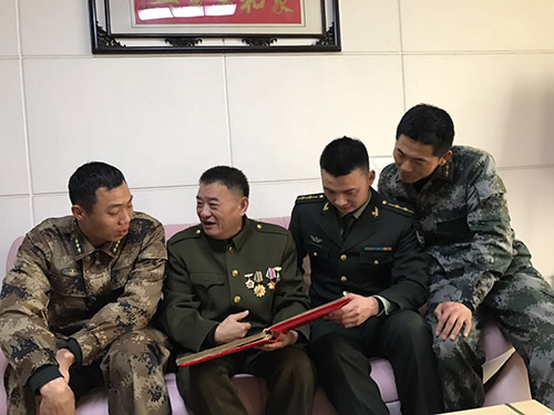 本報(bào)訊 追憶崢嶸歲月,鐵血軍魂永在。2月3日上午,春節(jié)的腳步越來(lái)越近,空氣中彌漫著節(jié)日喜慶的氣息。3名返鄉(xiāng)探親的“周口好兵”、一等功臣柳東坡、劉威、崔二偉相約慕名來(lái)到被中央軍委授予“英雄步談機(jī)員”榮譽(yù)稱(chēng)號(hào)、一等功臣海水干家中,聆聽(tīng)老英雄講述當(dāng)年的戰(zhàn)斗事跡,上了一堂生動(dòng)的國(guó)防教育課。