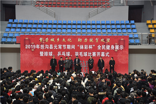 2月17日上午,元宵佳節(jié)即將來臨之際,在全縣脫貧攻堅(jiān)沖刺的關(guān)鍵時(shí)期,扶溝縣2019年元宵節(jié)“體彩杯”全民健身展示暨排球、乒乓球、羽毛球比賽活動(dòng)在縣體育館隆重開幕?;顒?dòng)旨在豐富全縣廣大人民群眾的文化生活,助力脫貧攻堅(jiān),為實(shí)現(xiàn)“五個(gè)扶溝”增光添彩??h委常委、宣傳部長(zhǎng)馬昭才,副縣長(zhǎng)吳興華等出席開幕式??h委宣傳部副部長(zhǎng)張根主持開幕式。