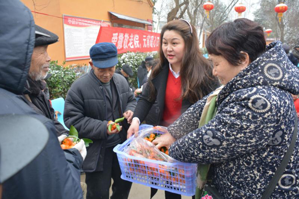據(jù)了解,此次開展“愛灑敬老院、元宵暖心田”公益活動(dòng)的發(fā)起人,是剛剛獲得商水縣“道德模范”的愛心人士劉玉英。劉玉英是一名中共黨員,她早年外出務(wù)工,近幾年返鄉(xiāng)后任職某保險(xiǎn)公司。經(jīng)常關(guān)愛留守兒童和老人、對(duì)親戚鄰居慷慨相助,她還加入了“周口義工”團(tuán)隊(duì),踴躍參加當(dāng)?shù)亍笆∵\(yùn)會(huì)”“殘運(yùn)會(huì)”義務(wù)服務(wù)活動(dòng)?!耙粋€(gè)人的愛心是有限的,這次自愿報(bào)名參加人員都是愛心企業(yè)家,盡管他們工作都很忙,一聽說(shuō)要去敬老院給老人送元宵都親自來(lái)了?!眲⒂裼⒔榻B說(shuō),“我們帶來(lái)了精心挑選的6件黑芝麻水果元宵、4件蘋果、4件砂糖橘、2件柚子、4件香蕉、2件雪梨,還有市區(qū)‘亨達(dá)果品’水果店老板獻(xiàn)愛心捐贈(zèng)的一箱西瓜,盡管這些東西價(jià)值只有1000多元,但畢竟是大家的一片心意!”