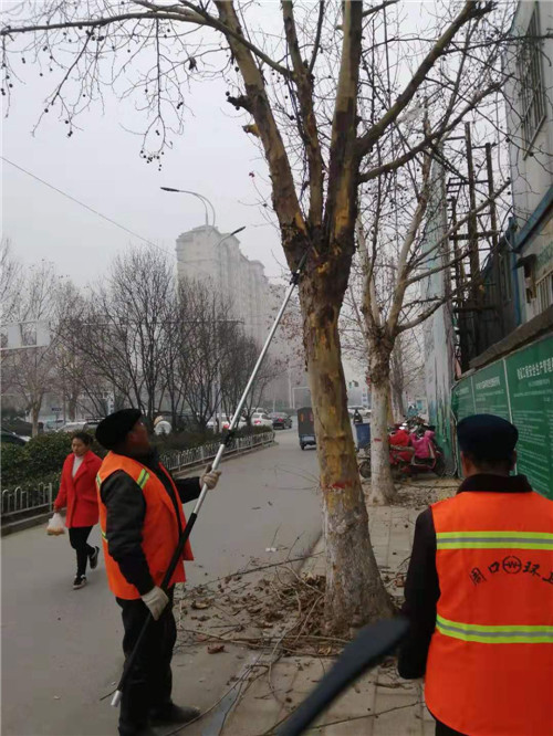 2月26日上午,為避免枯枝墜落傷人,有關部門派出人員在慶豐路與中原路交叉口東側(cè)清理行道樹枯枝。