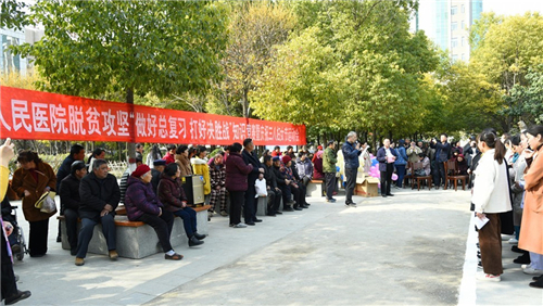 運(yùn)動(dòng)會(huì)共設(shè)四個(gè)項(xiàng)目:你演我猜、踩氣球、搶凳子和蒙眼擊鼓。講究默契的你演我猜,團(tuán)隊(duì)協(xié)作的踩氣球,笑料百出的蒙眼擊鼓,讓整個(gè)賽場(chǎng)充滿著歡聲笑語(yǔ)。激烈的比賽也引來(lái)了患者及家屬的圍觀,他們也被這歡樂(lè)的氣氛感染,臉上綻放出了笑容。在競(jìng)爭(zhēng)激烈的搶凳子比賽中,主持人加入了知識(shí)問(wèn)答環(huán)節(jié),沒(méi)搶到凳子的要回答主持人提出的扶貧措施問(wèn)題,隨著一個(gè)個(gè)參賽者被淘汰,醫(yī)院的各項(xiàng)扶貧措施也給圍觀者們留下了深刻的印象。