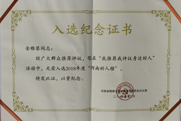 記者3月14日從西華縣委宣傳部獲悉,在日前揭曉的“出彩河南人 增輝新時(shí)代—2018年河南好人榜暨第三屆河南省鄉(xiāng)村好媳婦”名單中,來(lái)自西華縣實(shí)驗(yàn)小學(xué)教師金雅琴入選2018年度“河南好人榜”,榮獲孝老愛(ài)親類(lèi)“河南好人”稱(chēng)號(hào)。