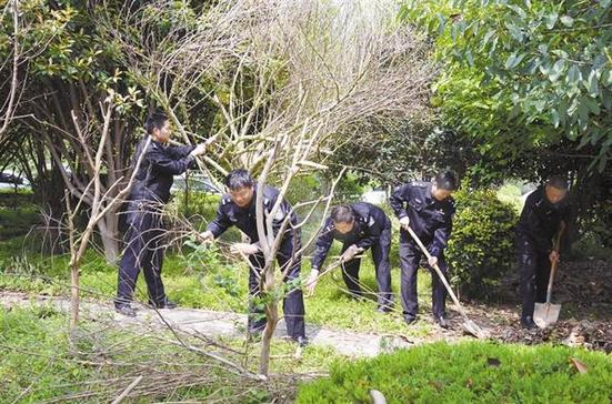 我市召開創(chuàng)建國家衛(wèi)生城市百日沖刺動員大會以來,市公安局犯罪偵查支隊指揮室黨支部號召黨員民警從身邊做起、從小事做起、從點滴做起,以實際行動積極參與“創(chuàng)衛(wèi)”工作。圖為4月28日上午,民警在營區(qū)修剪花木、清掃殘葉。記者 竇娜 攝