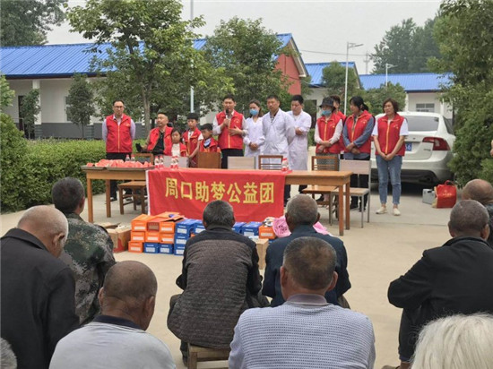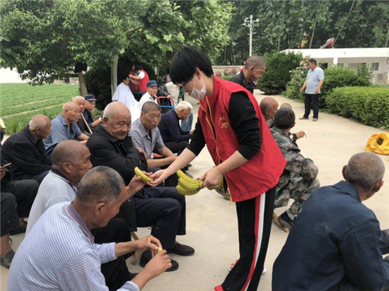 當(dāng)天上午,周口助夢(mèng)公益團(tuán)20余名志愿者來(lái)到西華縣大王莊鄉(xiāng)中心敬老院,為37名老人帶來(lái)了自發(fā)捐款購(gòu)買(mǎi)的鞋子、毛巾、襪子、香皂、臉盆、香蕉、西瓜等價(jià)值近2000元的愛(ài)心物資。