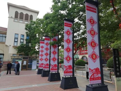 記者了解到,該社區(qū)圍繞自身特點(diǎn),結(jié)合社會(huì)熱點(diǎn),以社會(huì)主義核心價(jià)值觀為載體,貫徹落實(shí)“以文化城”的城市發(fā)展理念,以“愛在鄰里”為主題,結(jié)合中華民族優(yōu)秀傳統(tǒng)文化,涵蓋紅色黨建、文明禮儀、家風(fēng)家訓(xùn)、衛(wèi)生健康教育、環(huán)保知識(shí)、安全生產(chǎn)、社區(qū)工作等方面知識(shí)內(nèi)容,大力宣傳“家和、鄰睦、綠色、共建、共治、共享”的社區(qū)發(fā)展理念和“健康、衛(wèi)生、文明”的生活理念。一幅幅圖文并茂的宣傳板,一句句引人深思的文明標(biāo)語,都透露出濃濃的文化氣息。該活動(dòng)既傳播了文明禮儀、傳統(tǒng)文化、科學(xué)常識(shí)、鄰里和諧、衛(wèi)生保健等方面知識(shí),使居民在耳濡目染中受到教育,又傳達(dá)了社區(qū)支部、居委會(huì)的職能和相關(guān)業(yè)務(wù),讓居民們更加了解社區(qū)工作內(nèi)容,為建設(shè)和諧文明社區(qū)增添了一個(gè)嶄新的交流窗口。