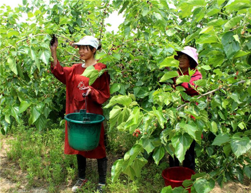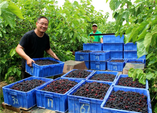除此之外,桑果的采摘全靠人工,是勞動密集型產(chǎn)業(yè),需要大量當?shù)氐膭趧恿?,每到采摘季?jié),公司都會招用周邊200余名村民到種植基地務工,僅此一項,為每名務工人員人均增收3000余元?!鞍吃谝嫫飞i┓N植基地采摘桑椹,每天都有100多元的收入?!苯衲?3歲的黃橋鄉(xiāng)孫堤村留守婦女趙美容高興的說。