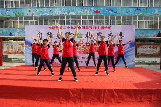 活動(dòng)儀式上,縣特殊教育學(xué)校學(xué)生和縣音樂家協(xié)會(huì)文藝志愿者分別為觀眾表演了精彩的文藝節(jié)目。縣特殊教育學(xué)校的學(xué)生首先表演了舞蹈《海草舞》,文藝志愿者周紅春演唱了歌曲《愛的奉獻(xiàn)》、《天南地北淮陽(yáng)人》、李泉稼小朋友演唱了豫劇《洼洼地里好莊稼》,淮陽(yáng)特殊教育學(xué)校學(xué)生表演了節(jié)目《感恩的心》。精彩的表演贏得了現(xiàn)場(chǎng)觀眾的陣陣掌聲。