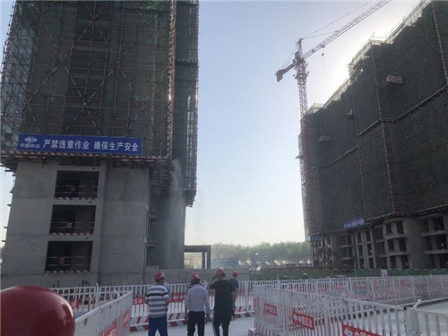 當日下午,記者在金海嘉苑3標段施工現(xiàn)場看到,高聳入云的塔吊有條不紊地作業(yè),施工車輛不時進出,施工人員揮汗如雨緊張施工,一派忙碌的施工景象。工地環(huán)保措施也相當?shù)轿唬瑯菍訃娏芗て鹚F彩虹,圍擋及通道噴淋霧狀灑水,車輛進出必須清洗。在項目入口施工顯示牌上,噪音、揚塵等指標均嚴格控制在標準區(qū)間內(nèi)。