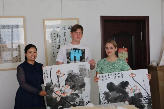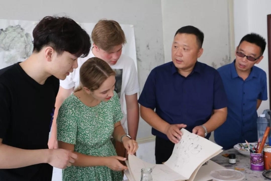 鹿邑本土畫(huà)家劉龍飛畫(huà)的花鳥(niǎo)栩栩如生引起俄羅斯青年畫(huà)家們的嘖嘖稱嘆。兩位青年畫(huà)家通過(guò)翻譯告訴記者,中國(guó)畫(huà)歷史悠久、博大精深,看到兩位老師的畫(huà)作形神兼?zhèn)洌瑲忭嵣鷦?dòng),真是不虛此行,感謝贈(zèng)送的佳作,他們一定珍藏。據(jù)悉,本次活動(dòng)他們將以國(guó)際藝術(shù)志愿者的身份、以西方人的視角描繪老子故里的美景,他們走進(jìn)明道宮、太清宮等景點(diǎn)實(shí)地寫(xiě)生,并走美術(shù)學(xué)校為孩子們輔導(dǎo)繪畫(huà)并帶來(lái)世界名校的繪畫(huà)理念。