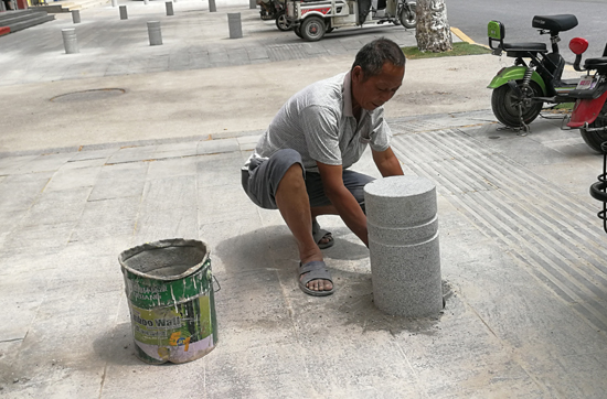 7月9日上午,工人正在八一大道兩側(cè)的人行道上安裝隔離石樁。為杜絕機動車占用人行道,相關部門近日陸續(xù)在中心城區(qū)多條主干道兩側(cè)的人行道上安裝隔離石樁。市民紛紛表示,安裝隔離石樁讓人行道更通暢了,也使城市更有序了。 記者 關秋麗 攝