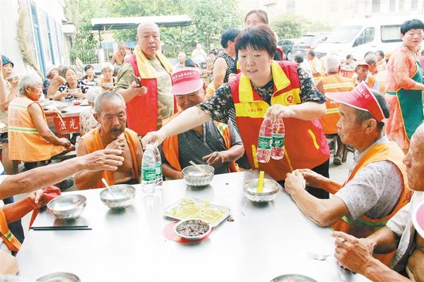 為幫助環(huán)衛(wèi)工做好防暑降溫工作,7月23日,太康縣總工會(huì)到該縣“愛心粥屋”看望慰問環(huán)衛(wèi)工人,并捐贈(zèng)1萬元現(xiàn)金和價(jià)值6000元的毛巾、礦泉水。圖為該縣總工會(huì)志愿者為環(huán)衛(wèi)工發(fā)放礦泉水。