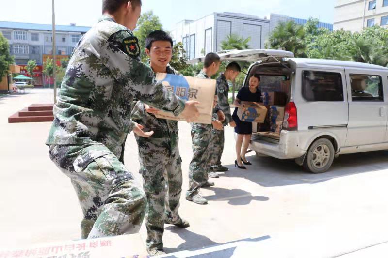 7月29日,太康縣清華園書店負(fù)責(zé)人李丹駕駛面包車,先后來到縣人民武裝部和消防大隊(duì),為部隊(duì)官兵和消防指戰(zhàn)員送來礦泉水等。讓他們?cè)诟邷靥鞖饫锔惺艿角迦A園書店送來的絲絲清涼?!八麄兤匠S?xùn)練、滅火很辛苦,作為一個(gè)愛心企業(yè),關(guān)心部隊(duì)官兵是我應(yīng)盡的義務(wù)?!崩畹ばχf。