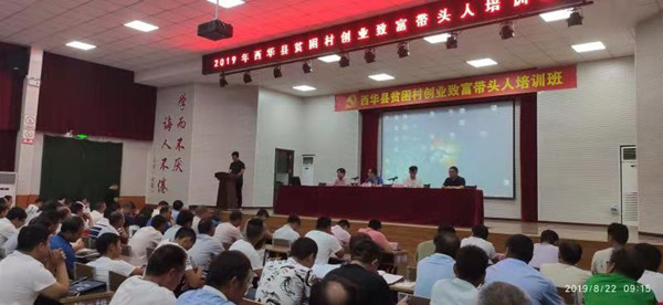 8月22日上午,西華縣扶貧辦、西華縣農民科技培訓學校聯(lián)合舉行2019年度貧困村創(chuàng)業(yè)致富帶頭人培訓班。培訓班儀式上,對涌現(xiàn)出的20名貧困村創(chuàng)業(yè)致富帶頭人進行了表彰,3名創(chuàng)業(yè)致富帶頭人代表作了典型發(fā)言,西華縣農民科技培訓學校校長作了表態(tài)發(fā)言。