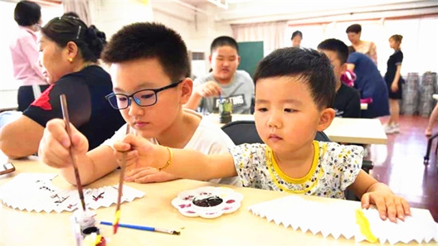 北京市懷柔區(qū)泉河街道新賢家園社區(qū)開展“DIY手工水印折扇,喜迎祖國70華誕”主題活動,40余名青少年共同學(xué)習(xí)體驗水印折扇的文化和樂趣。