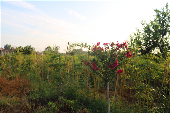 米杰是第一個嘗試吃螃蟹的田園綜合體追夢人,這個在外打拼多年事業(yè)有成的豫東漢子,放棄了原本舒適的城市生活,于去年初回到老家大米行政村,通過流轉(zhuǎn)連片成方土地,栽植紫薇、紅梅、丁香、臘梅、石楠、海棠、櫻花、碧桃、無花果、蘋果、藍莓、石榴、冬棗等各類喬木果樹,并配套完成地下供排水管網(wǎng)和線纜埋設(shè)等現(xiàn)代化農(nóng)田設(shè)施,和鎮(zhèn)里已經(jīng)形成的萬畝中藥材基地連成一片,形成規(guī)模效應(yīng)。朝著他心目中的“一田花、一片林、一灣水、一首詩、一幅畫”——惠濟灣田園旅游新高地闊步前行。