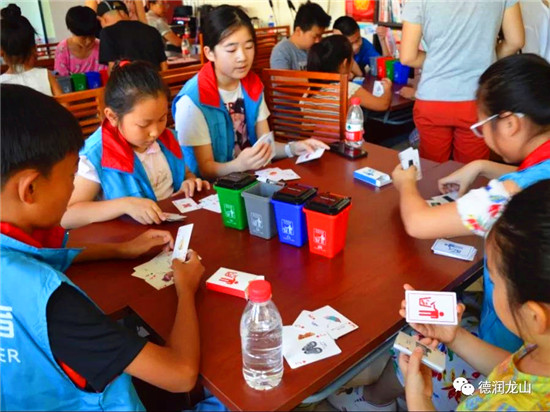 本次活動邀請北京市家庭教育研究會副秘書長劉國平老師為孩子們講課。劉老師首先從垃圾對生活的影響,垃圾分類的好處及各類垃圾如何分類三個方面做了詳細的講解。然后讓小朋友分組進行垃圾分類的實操演練,每組都分到四個垃圾桶和兩幅撲克牌,孩子們按撲克牌上內容進行垃圾分類,分類過程中孩子們進行了熱烈的討論,分類結束后每組孩子們都展示了自己的勞動成果,通過自己動手快速掌握垃圾分類的要領。