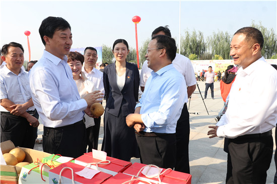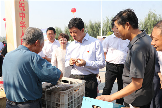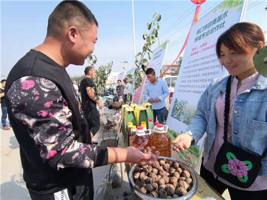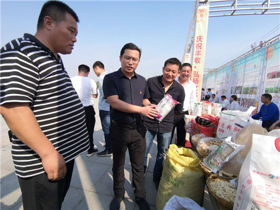 一問(wèn)一答間,爽朗的笑聲響徹節(jié)日上空,農(nóng)民們喜笑顏開,傳遞出濃濃的幸福。大棗、黑木耳、小麥粉、粉條等西華縣各具特色的農(nóng)產(chǎn)品紛紛亮相,除了展示各自的“增收實(shí)力”,也展示出幾年來(lái)發(fā)展農(nóng)業(yè)特色經(jīng)濟(jì)的豐碩成果?!罢钆_(tái),農(nóng)民唱戲,每年一度的農(nóng)民豐收節(jié)既是農(nóng)民歡樂的節(jié)日,也是展銷農(nóng)產(chǎn)品的紐帶平臺(tái),今天我們奉母鎮(zhèn)展示了本地原生態(tài)粉條和純糧美酒,希望借助豐收節(jié)機(jī)遇,拓寬銷路實(shí)現(xiàn)農(nóng)民增收。”西華縣奉母鎮(zhèn)黨委書記陳鵬告訴記者。
