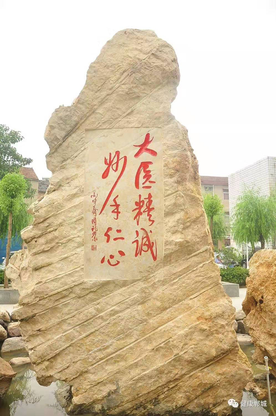 他雖然離開了鄲城,但一直關(guān)注著醫(yī)院的發(fā)展。醫(yī)院領(lǐng)導(dǎo)也多次到上??赐?,向他匯報醫(yī)院近年來的發(fā)展情況。2016年,鄲城縣人民醫(yī)院院長于健到上??赐牭结t(yī)院近年來快速健康的發(fā)展進(jìn)程,周老先生非常高興,欣然提筆寫下“大醫(yī)精誠,妙手仁心”八個大字。周老先生的題詞被雕刻在一尊文化石上,座落在醫(yī)院文化廣場上。