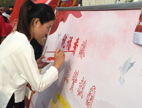 9月29日上午,來(lái)自我市各界的青聯(lián)委員及青年代表共同參與“祝福香港 點(diǎn)贊祖國(guó)”活動(dòng)。活動(dòng)現(xiàn)場(chǎng),大家紛紛與國(guó)旗合影,并在簽名墻上寫下祝愿祖國(guó)的話語(yǔ)。