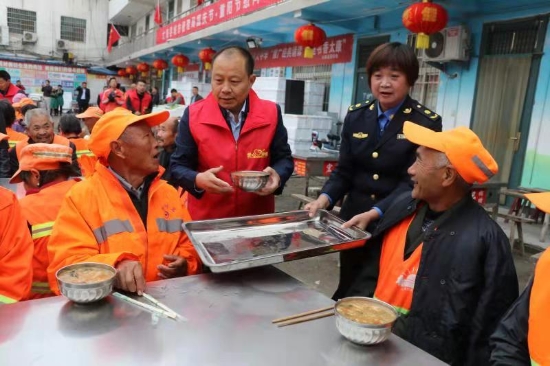 當日凌晨5時許,太康縣愛心早餐點人頭攢動,熱鬧非凡,一輛裝滿新鮮蔬菜的大貨車停放在院中,20多名城管志愿者在太康縣城管局局長張愛梅的帶領下正從車上往下卸蔬菜。聽說愛心企業(yè)要為環(huán)衛(wèi)工捐贈蔬菜,太康縣委常委、統(tǒng)戰(zhàn)部長張新棟也放棄節(jié)日休息,天不明趕到太康愛心早餐點,加入到蔬菜裝卸行列?!肮?jié)日里,縣領導也不忘過來看望我們環(huán)衛(wèi)工,真讓人感動啊?!笨粗鴱埿聴?、張愛梅等人忙前忙后卸蔬菜,臉上浸滿了汗珠,環(huán)衛(wèi)工張大爺?shù)热藙忧榈卣f,“社會上有這么多好人關心我們環(huán)衛(wèi)工,我們再苦再累也值了!”