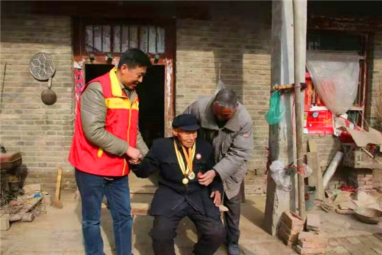 趙隆成是衡霞光走訪的第一名老兵。老人1925年出生,高賢鄉(xiāng)聚臺(tái)崗行政村人,16歲加入中國(guó)共產(chǎn)黨,1943年開(kāi)封戰(zhàn)役中腳跟受傷,行動(dòng)不便?!肮伯a(chǎn)黨好,共產(chǎn)黨的干部們好啊?!?得知來(lái)訪, 老人拉住衡霞光的手激動(dòng)地說(shuō)。