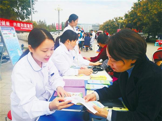 10月10日是世界精神衛(wèi)生日,當(dāng)日上午9時(shí)至11時(shí),周口市衛(wèi)健委組織我市28家醫(yī)院在川匯區(qū)文化廣場(chǎng)舉辦主題為“心理健康社會(huì)和諧,我行動(dòng)”的義診活動(dòng)?;顒?dòng)現(xiàn)場(chǎng),100多名醫(yī)務(wù)人員向群眾提供免費(fèi)疾病咨詢(xún),宣傳普及精神衛(wèi)生健康醫(yī)學(xué)知識(shí),紛紛開(kāi)出身心健康處方,受到群眾的熱烈歡迎。